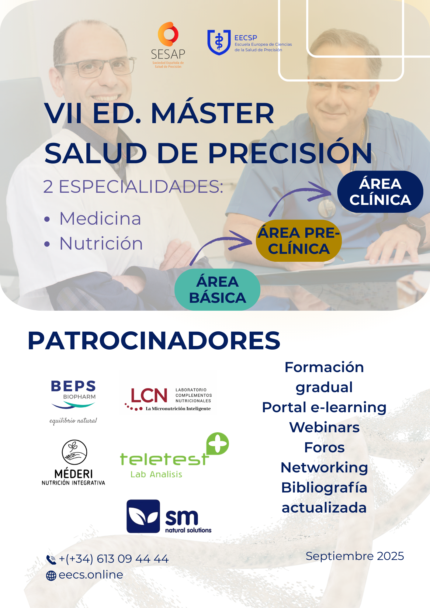 Máster: Salud de Precisión (Título de la Escuela Europea de Ciencias de la Salud) con el aval de la Sociedad Española de Salud de Precisión.